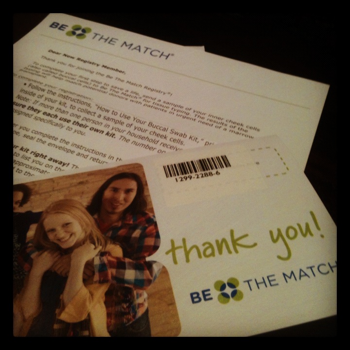 The process is that easy. Once the kit is received, it takes a few months for your name to be put on the official member list. When that happens, you become part of every patient’s search for a life-saving donor. I am waiting to be put on that list. I just completed the swab of my cheeks and mailed the kit. I know that I may never be called as a perfect match for someone, but it feels good to know that there is a chance that I could help. I could save a life. If nothing else, my name being on a list may just bring hope to a patient in need. Thousands of patients dream of a possible marrow donor every day. Most patients will not have a donor in their family. They depend on others. They depend on me. They depend on you.