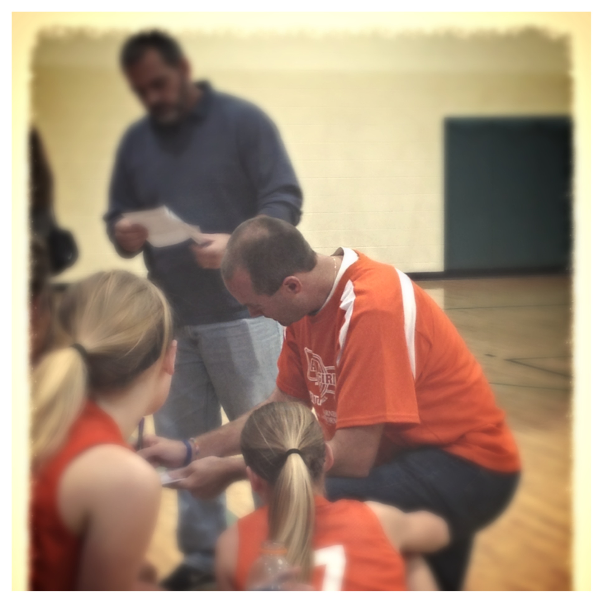 I am the coach of The Orange, a team composed of nine 7th and 8th graders. The girls are still trying to agree on a good team name. Suggestions thus far have been The Orange County Housewives, The Mangos, The Oompa-Loompas, The Egnaros, and the Nemos. An interesting selection of names in my opinion. My suggestion, The Killer Clownfish, fell on deaf ears. So, we play as The Orange. We practice one night a week for an hour and play games on Saturday mornings. We have won the only game we have played thus far and we are improving. My goals as coach is to teach them the game, develop some skills, and ensure that they have fun. Winning (not the priority but no one likes losing) will come if we accomplish these goals.