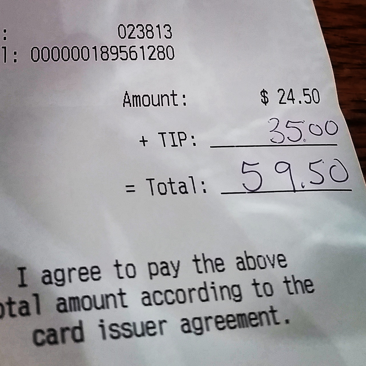 Day 13 of the 25 Days of Giving was called Generous Tip. Food service is a difficult job and great service isn’t always rewarded. Our goal was to show our appreciation for good service today by adding a little extra on the gratuity.